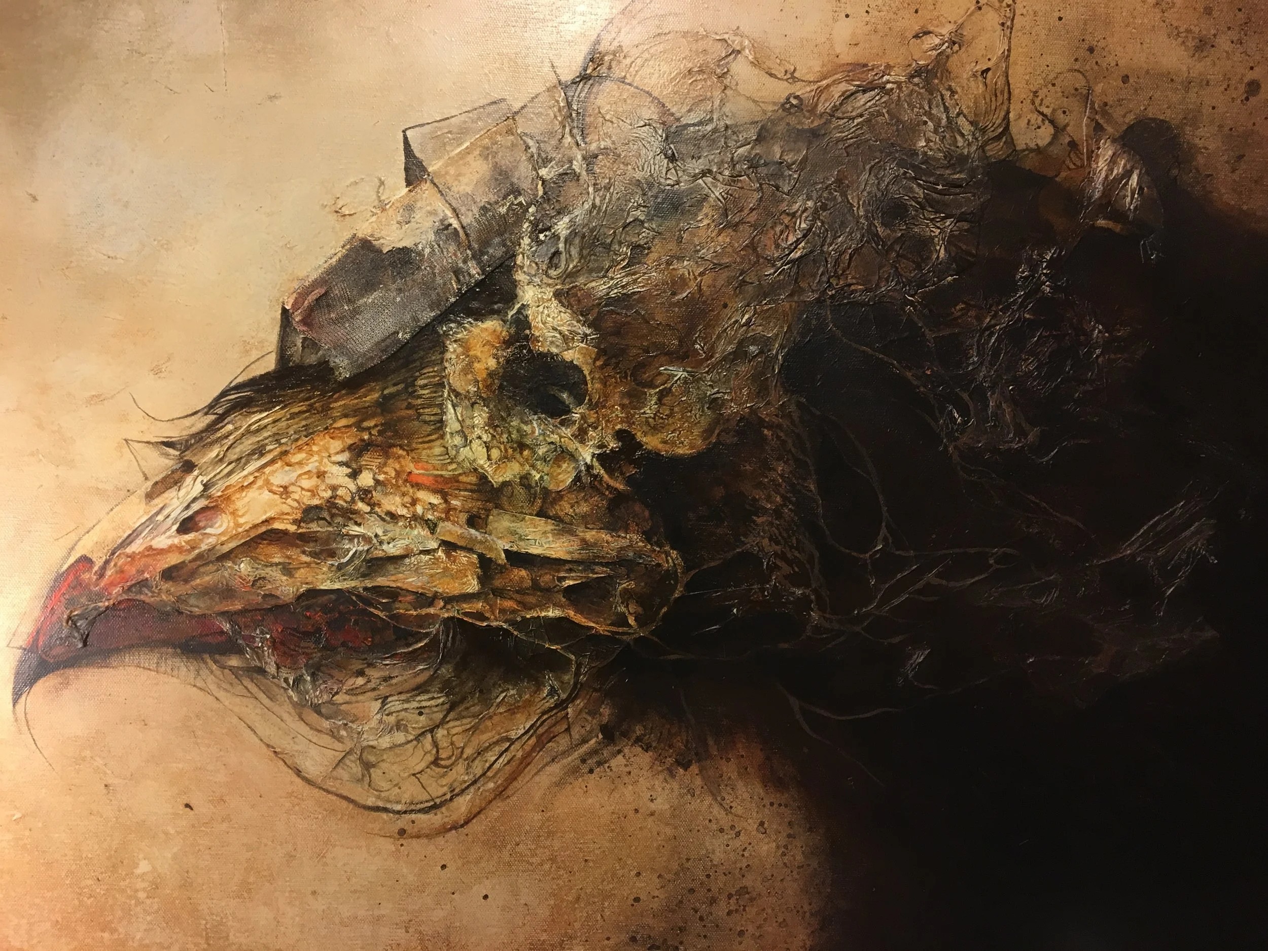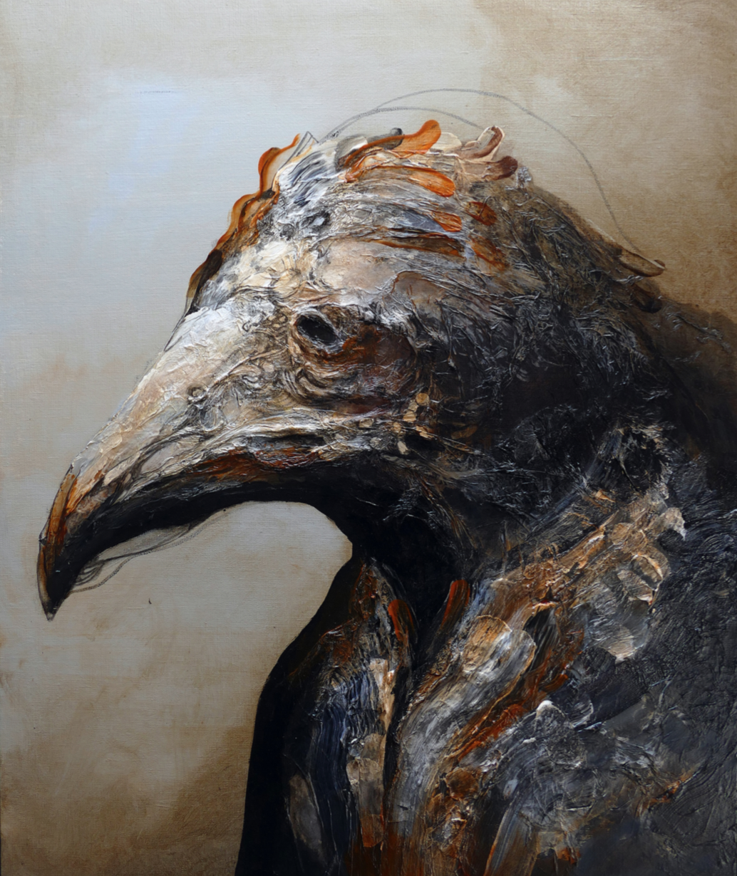 Eric Lacombe’s works are characterized by a well-thought-out juxtaposition of figurative elements and bodily expressionistic brushstrokes. Lacombe meticulously deconstructs the subjects of his compositions to highlight their three-dimensional qualities and invite the viewers to come up with their own interpretation of the work they stand in front. He uses acrylics, paper, oil, pens, paper mixed up with glue and acrylic, and various other techniques and materials. Lacombe’s paintings can be found in many private collections, and have been included in many group and solo exhibitions. He currently lives and works in Lyon, France.